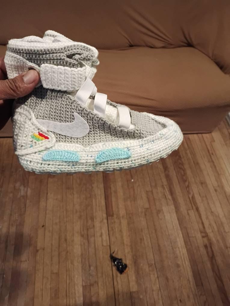 Crafted meticulously with crochet techniques, these newborn Air Mag booties are not just any footwear; they're a piece of art. Each pair is handmade, ensuring the highest quality and attention to detail. Made of 100% premium cotton, they promise warmth, comfort, and a dash of nostalgia.